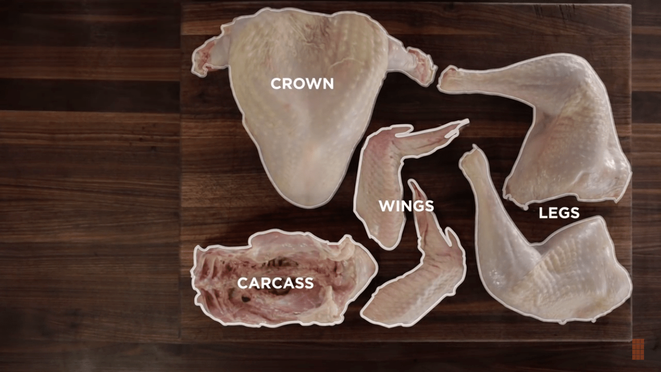 Garnish and serve. For carving techniques, one must understand the turkey’s anatomy. I used Chef Steps super awesome video diagram. See link below –