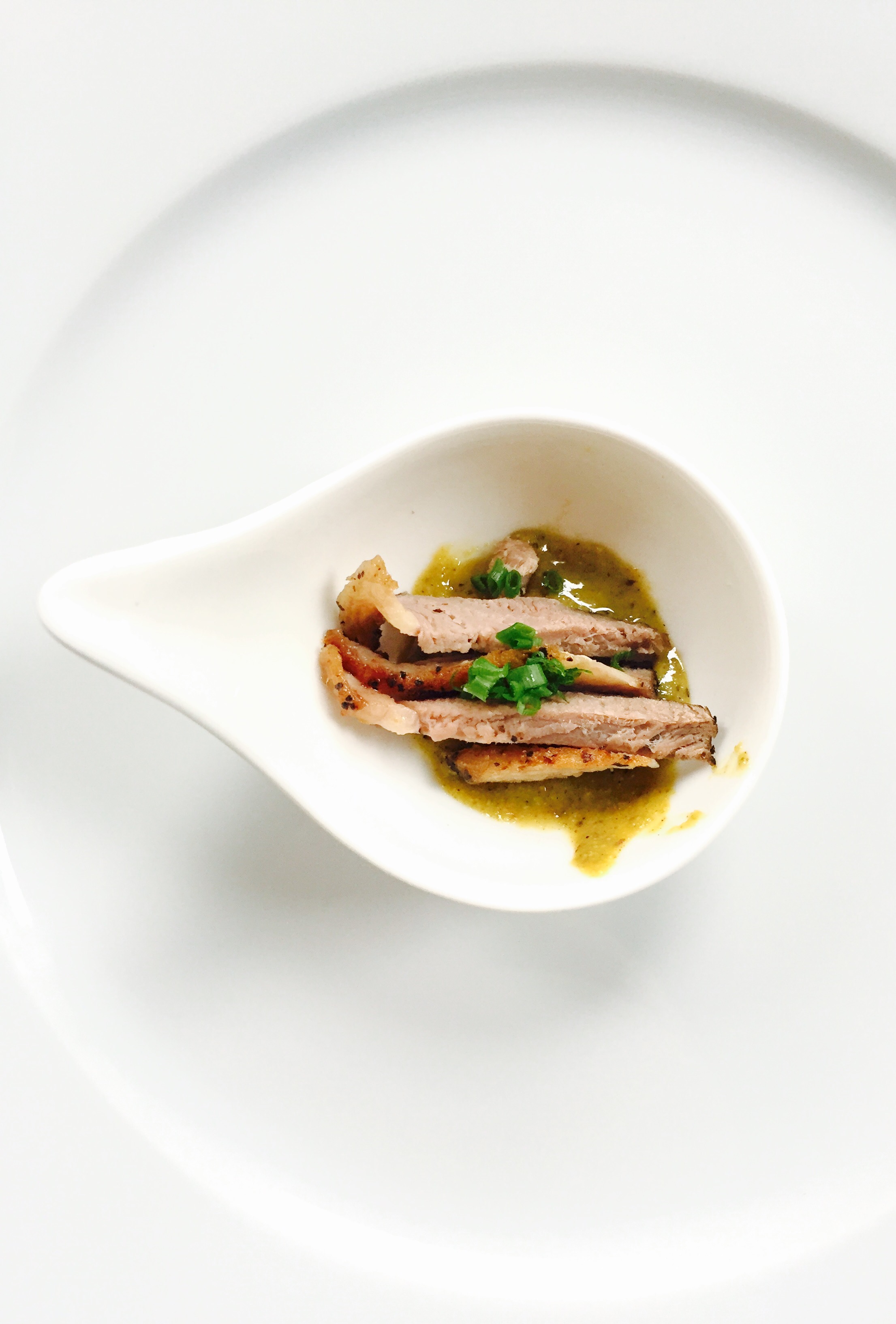 Seared Scallop w/pink peppercorn and Meyer lemon crisp (image courtesy of Pinsi Lei)