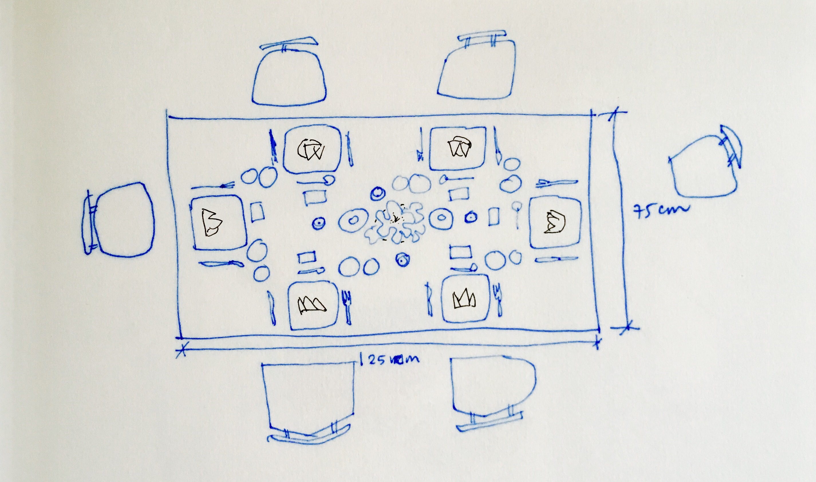 When we took the little side project and added a French chef to it, we got our first formal seating of Table For Six. Plating and tablescape design were obviously on our mind. When Chef JB and I couldn’t agree with each other, instead of arguing, we just sketch what we had in our mind. Just like that, we almost instantly understood each other – “ouai, ouai, exactement” – then we moved on to make it happen.